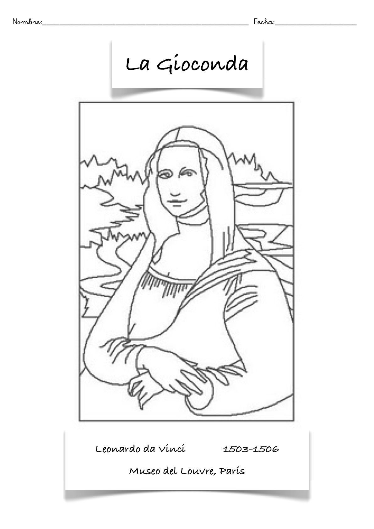 La Gioconda para imprimir y pintar para niños y niñas.
